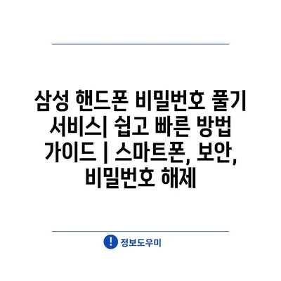 삼성 핸드폰 비밀번호 풀기 서비스는 많은 사용자에게 유용한 도구입니다.