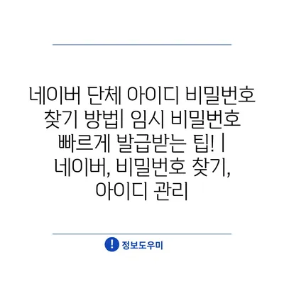 네이버 단체 아이디 비밀번호 찾기 방법| 임시 비밀번호 빠르게 발급받는 팁! | 네이버, 비밀번호 찾기, 아이디 관리
