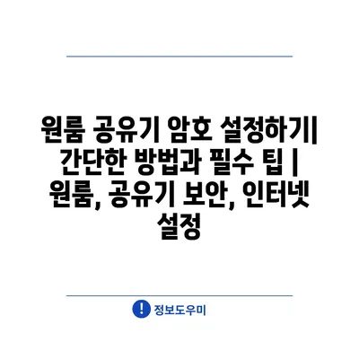 원룸 공유기 암호 설정하기| 간단한 방법과 필수 팁 | 원룸, 공유기 보안, 인터넷 설정