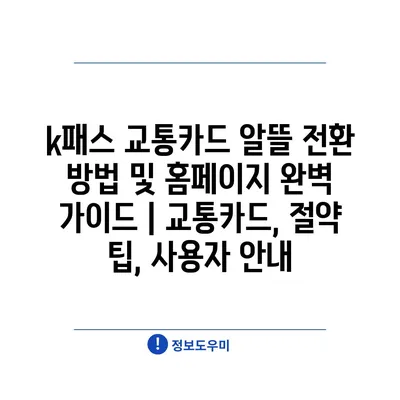 k패스 교통카드 알뜰 전환 방법 및 홈페이지 완벽 가이드 | 교통카드, 절약 팁, 사용자 안내