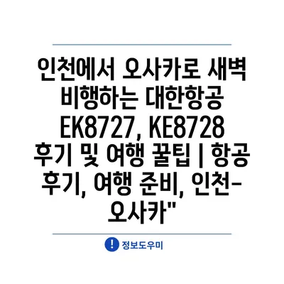 인천에서 오사카로 새벽 비행하는 대한항공 EK8727, KE8728 후기 및 여행 꿀팁 | 항공 후기, 여행 준비, 인천-오사카”