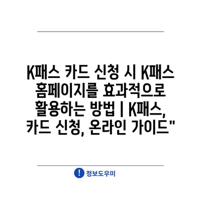 K패스 카드 신청 시 K패스 홈페이지를 효과적으로 활용하는 방법 | K패스, 카드 신청, 온라인 가이드”
