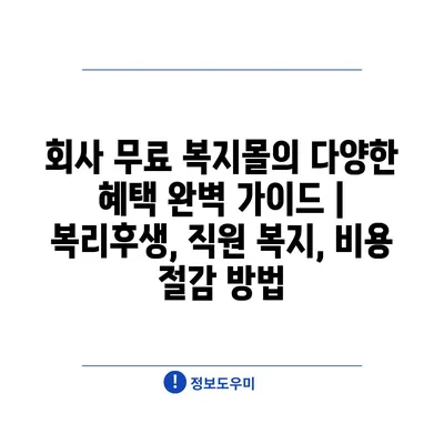 회사 무료 복지몰의 다양한 혜택 완벽 가이드 | 복리후생, 직원 복지, 비용 절감 방법