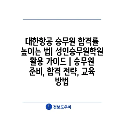 대한항공 승무원 합격률 높이는 법| 성인승무원학원 활용 가이드 | 승무원 준비, 합격 전략, 교육 방법