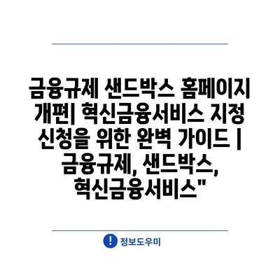 금융규제 샌드박스 홈페이지 개편| 혁신금융서비스 지정 신청을 위한 완벽 가이드 | 금융규제, 샌드박스, 혁신금융서비스”