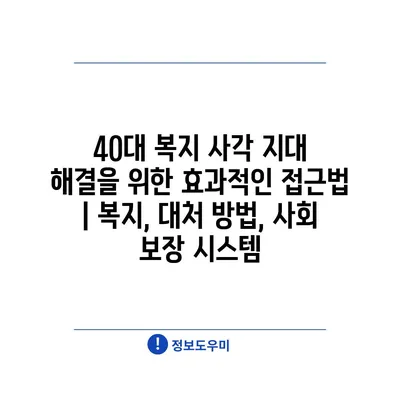 40대 복지 사각 지대 해결을 위한 효과적인 접근법 | 복지, 대처 방법, 사회 보장 시스템