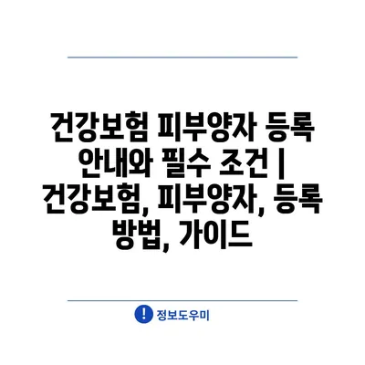 건강보험 피부양자 등록 안내와 필수 조건 | 건강보험, 피부양자, 등록 방법, 가이드