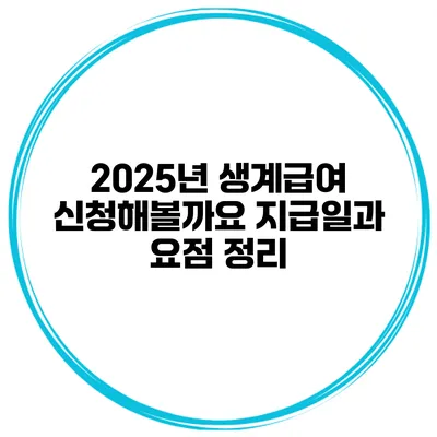 2025년 생계급여 신청해볼까요? 지급일과 요점 정리