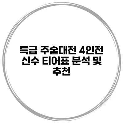 특급 주술대전 4인전 신수 티어표 분석 및 추천 특급 주술대전의 4인전에서 신수의 티어표를 분석하는 것은 게임에서 승리하기 위해 매우 중요해요. 각 신수의 특징과 역할을 파악하면 전략적인 플레이가 가능해지죠. 이번 포스트에서는 신수의 티어를 분류하고, 각 신수의 강점과 추천 조합을 살펴보겠어요. ✅ 원스휴먼의 숨겨진 무기 능력, 지금 바로 알아보세요! 👉 무기 능력 완벽 분석하기 신수 티어란 무엇인가요? … Read more