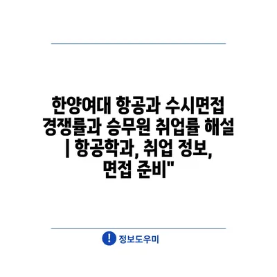 한양여대 항공과 수시면접 경쟁률과 승무원 취업률 해설 | 항공학과, 취업 정보, 면접 준비”
