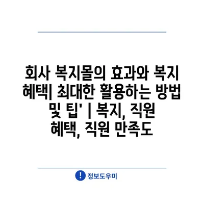 회사 복지몰의 효과와 복지 혜택| 최대한 활용하는 방법 및 팁’ | 복지, 직원 혜택, 직원 만족도