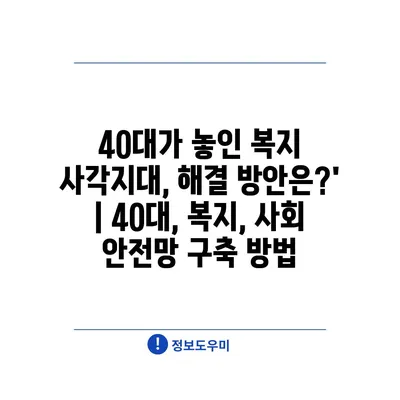 40대가 놓인 복지 사각지대, 해결 방안은?’ | 40대, 복지, 사회 안전망 구축 방법